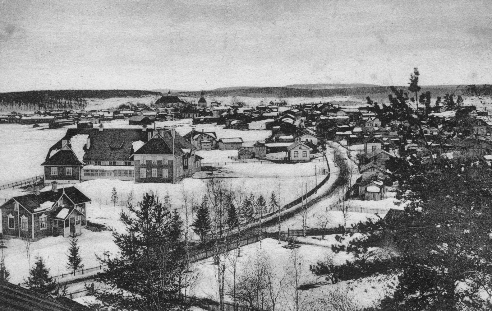 Kuvan keskellä tien poskessa näkyy talon pääty. Se on opistolle kuulunut Sirola, jonka vuokraoikeuden opisto lunasti vuonna 1918 kanttori Sirolta. Maa-alue kuului jo siihen aikaan opistolle. Sirola toimi opettajien asuntolona. Opiston taloudenhoitaja piti Sirolassa oto. Osuuskassan konttoria. Konttoriin oli käynti tien puolelta, pihan puolelta pääsi sisään asuintiloihin.